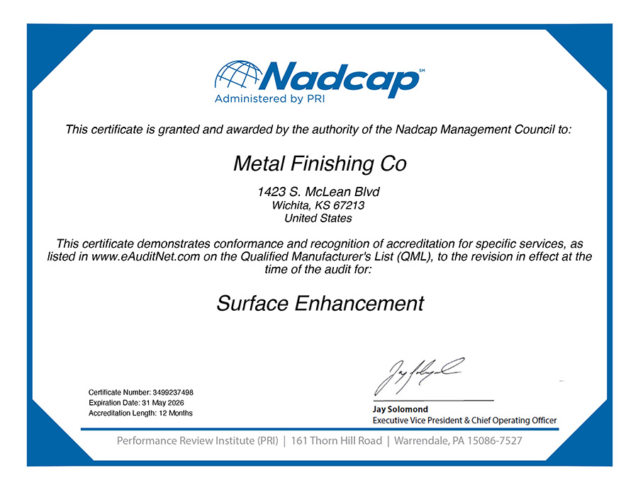 NADCAP accredited processes are available at all four Metal Finishing Company plants.